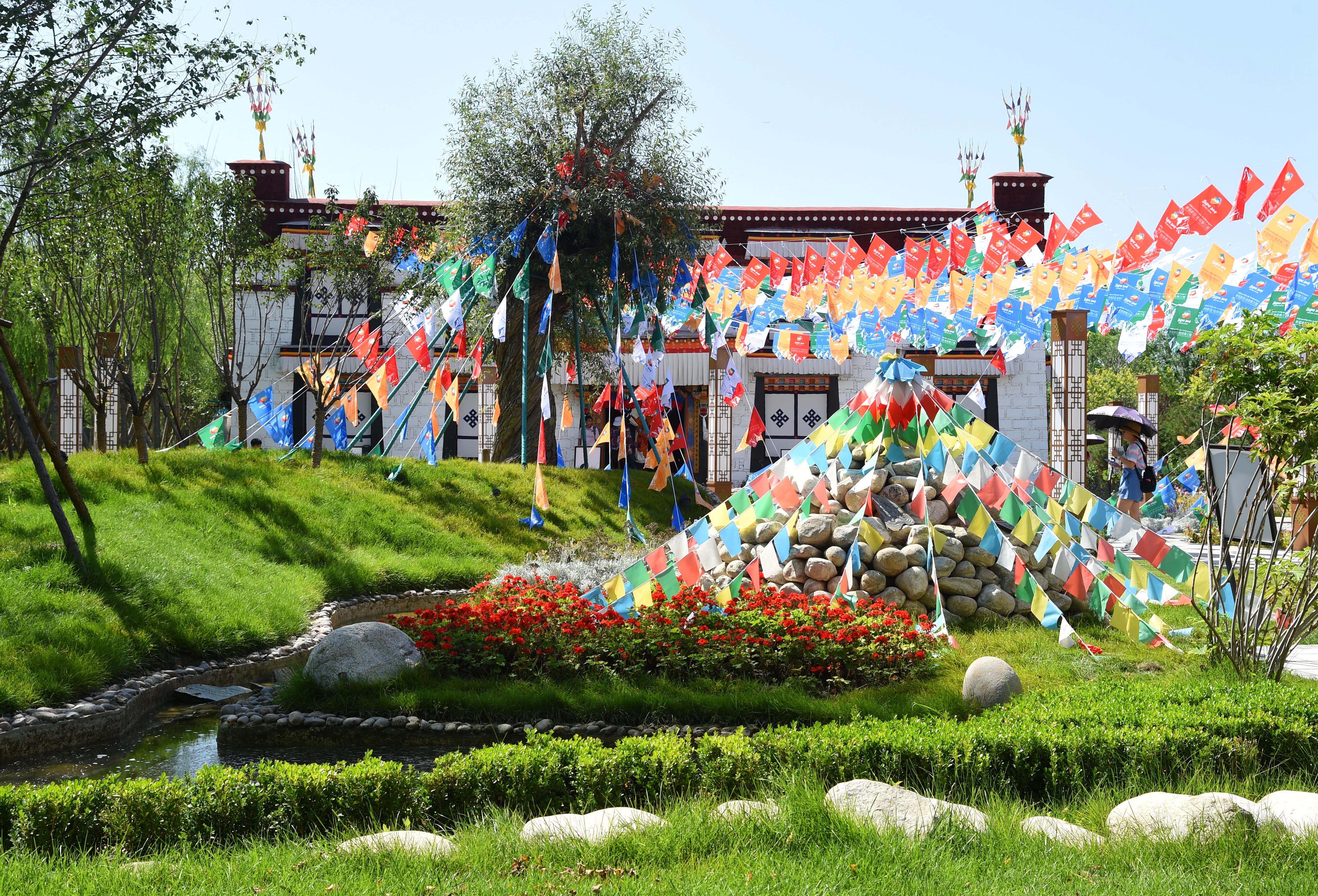 Tourists visit the Tibet Garden at the Beijing International Horticultural Exhibition in Beijing, capital of China. (Xinhua/Ren Chao)