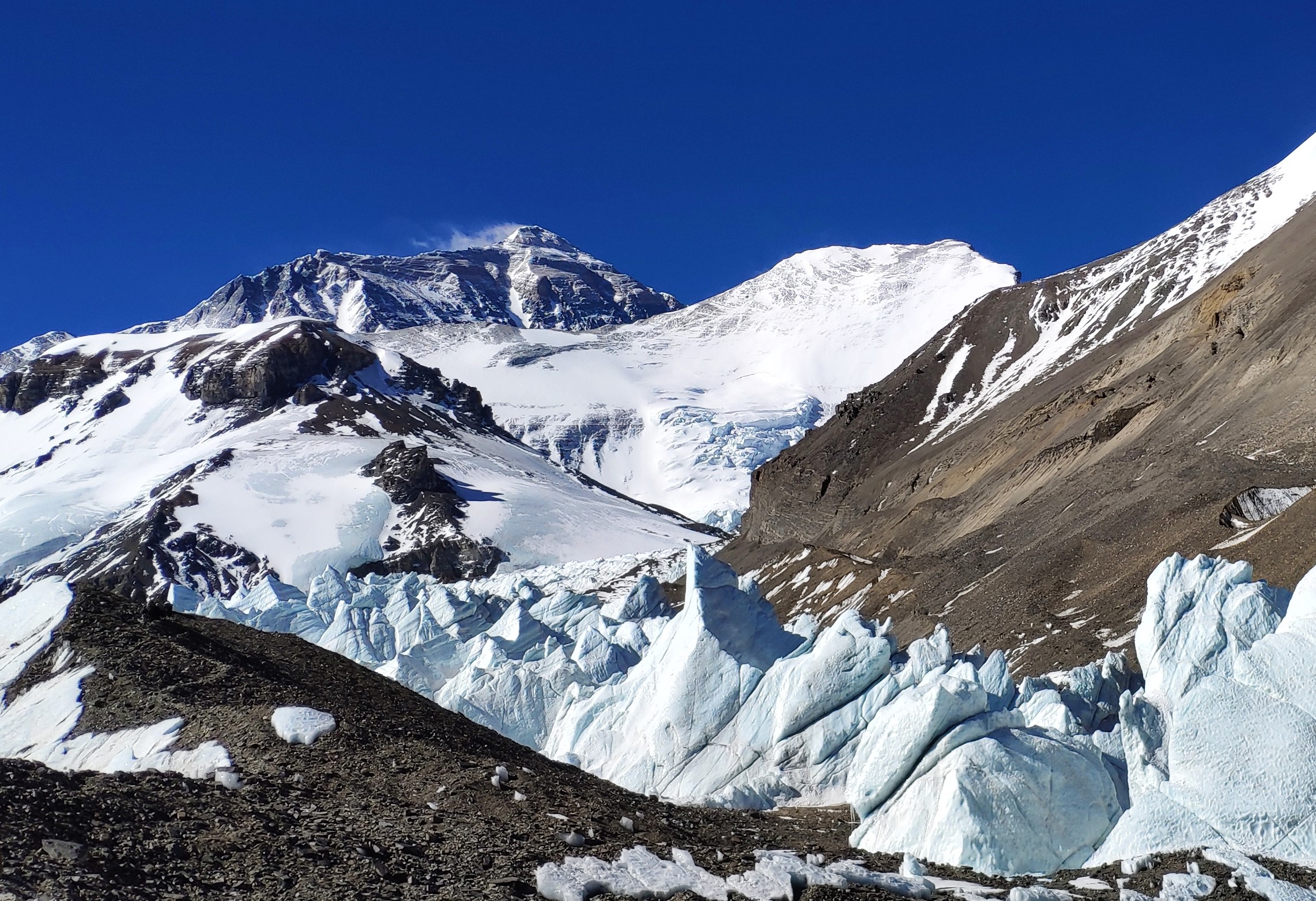 Glacier on the foot of Mount Qomolangma in southwest China's Tibet Autonomous Region. (Xinhua/Purbu Zhaxi)