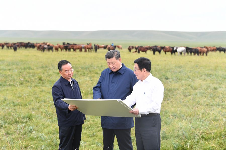 Xi emphasized the role of environmental protection in high-quality development, urging proper balance of the relationship between production and environment, active development of eco-friendly and sustainable industries, and better protection of the grassland resources.