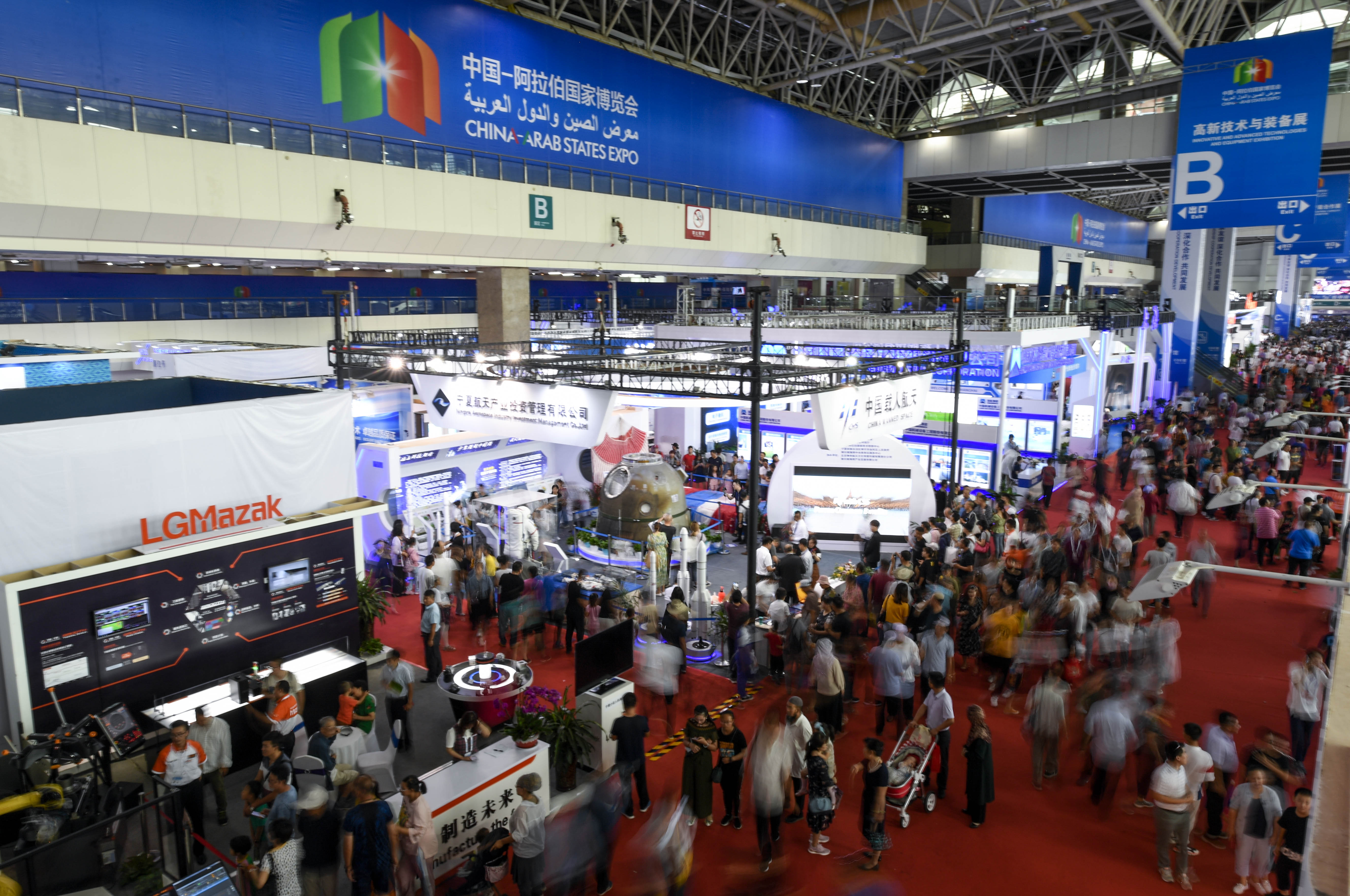 YINCHUAN, Sept. 8, 2019 (Xinhua) -- An exhibition of high technologies and equipment is held as part of the fourth China-Arab States Expo in Yinchuan, northwest China's Ningxia Hui Autonomous Region. Visitors are exposed to major scientific and technological breakthroughs and state-of-the-art equipment developed by the high-tech sector.