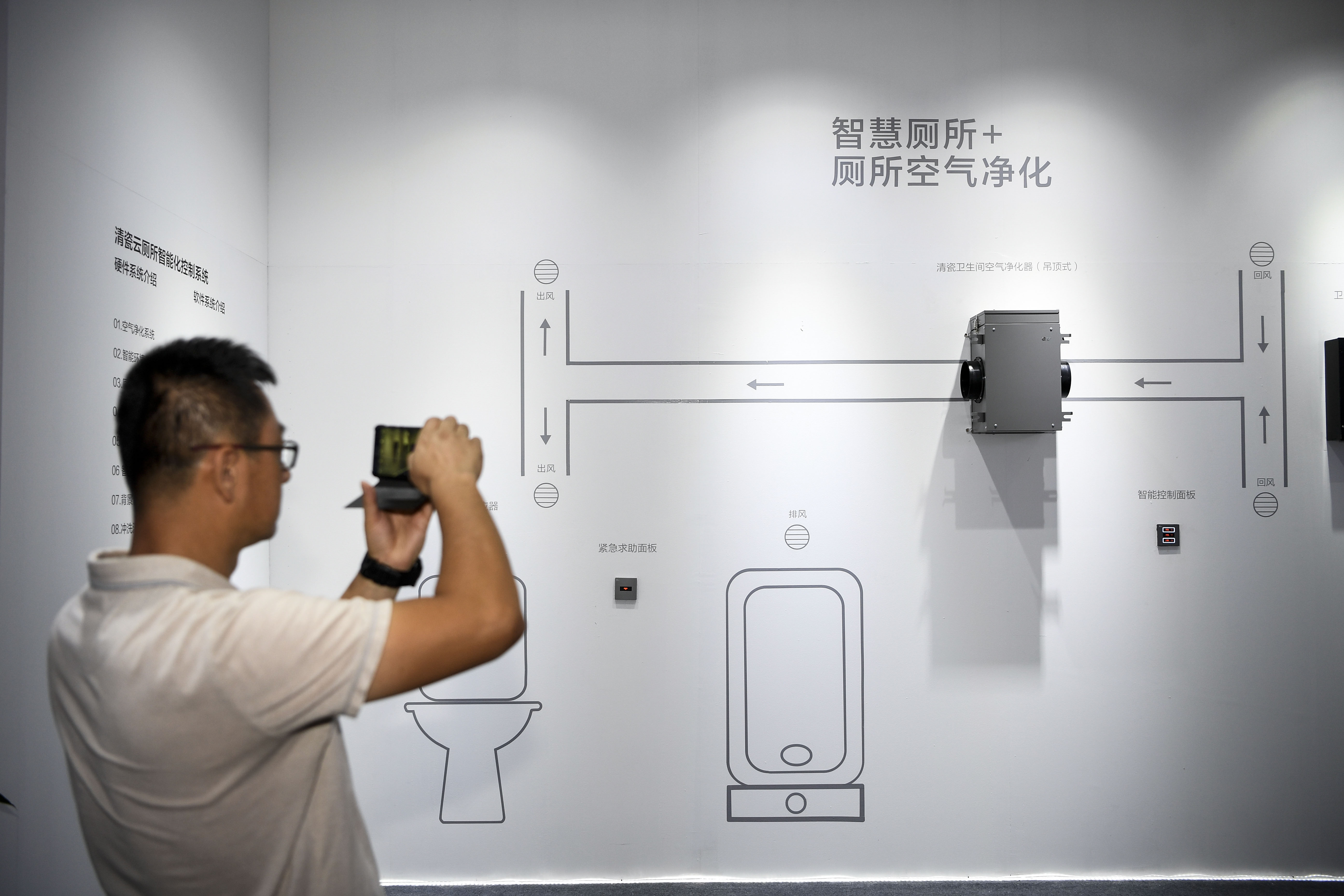 A visitor gets more information about a smart toilet control system at at the Expo, Sept. 6, 2019. (Xinhua/Feng Kaihua)