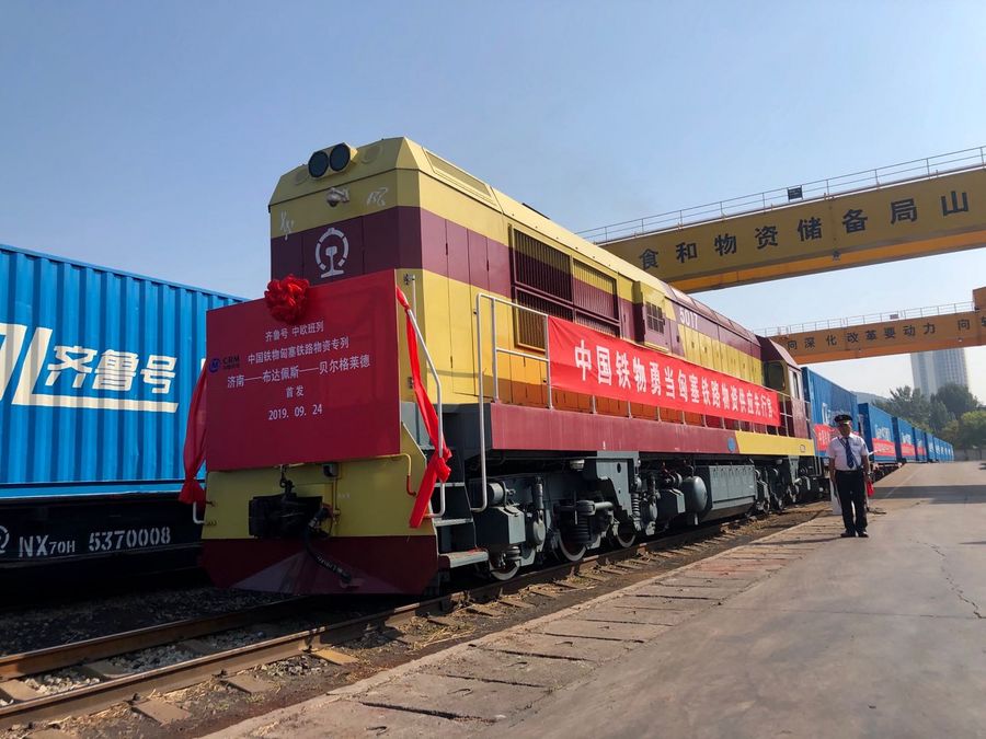 A freight train loaded with materials and parts for railway construction left Jinan, capital of east China's Shandong Province for Serbia , Sept. 24, 2019.(Photo provided to Xinhua)