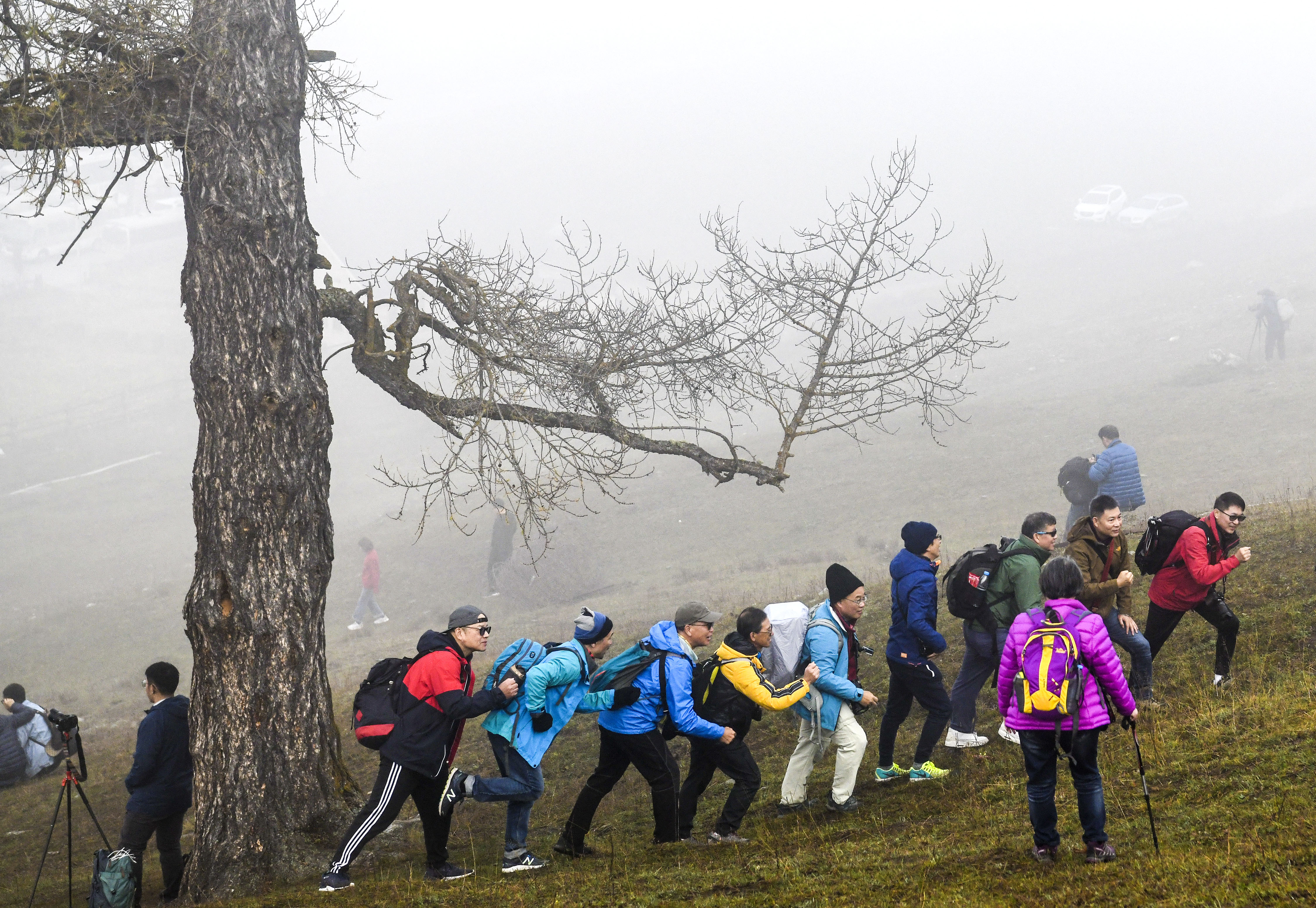 Tourists pose for photos at Kanas scenic spot in Altay, northwest China's Xinjiang Uygur Autonomous Region, Sept. 24, 2019. (Xinhua/Wang Fei)