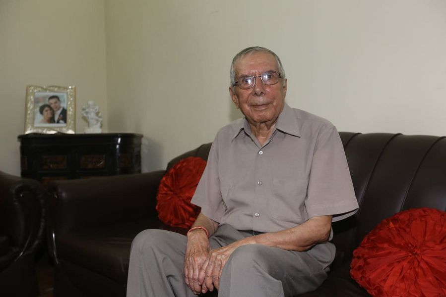 Basudev Sharma, 88, rests at his home in Kathmandu, Nepal, Sept. 3, 2019. (Xinhua/Zhou Shengping)