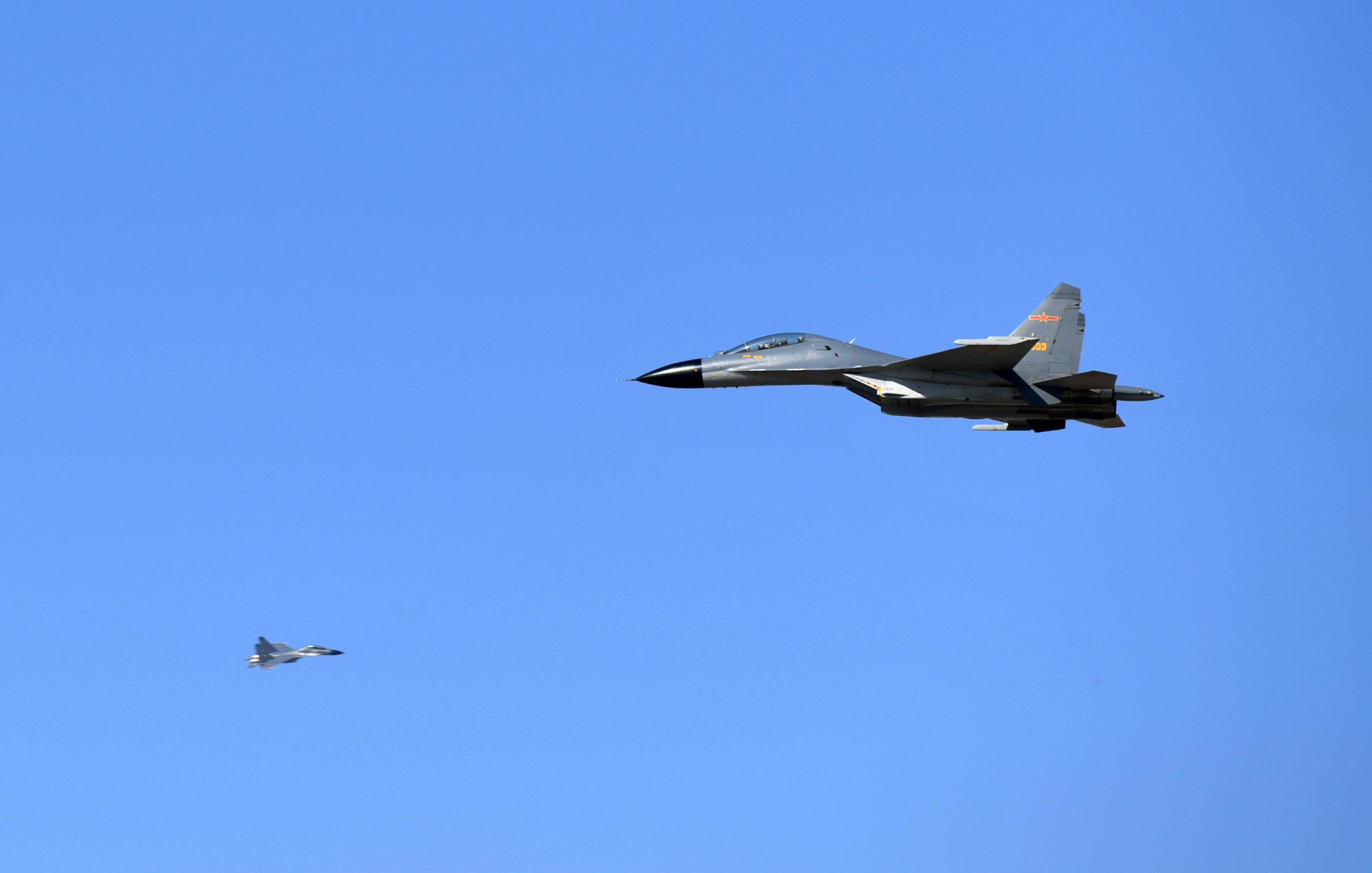 J-11BS fighters make a flight demonstration during an activity celebrating the 70th founding anniversary of the Chinese People's Liberation Army (PLA) air force in Changchun, capital of northeast China's Jilin Province, Oct. 17, 2019. (Xinhua/Lin Hong)