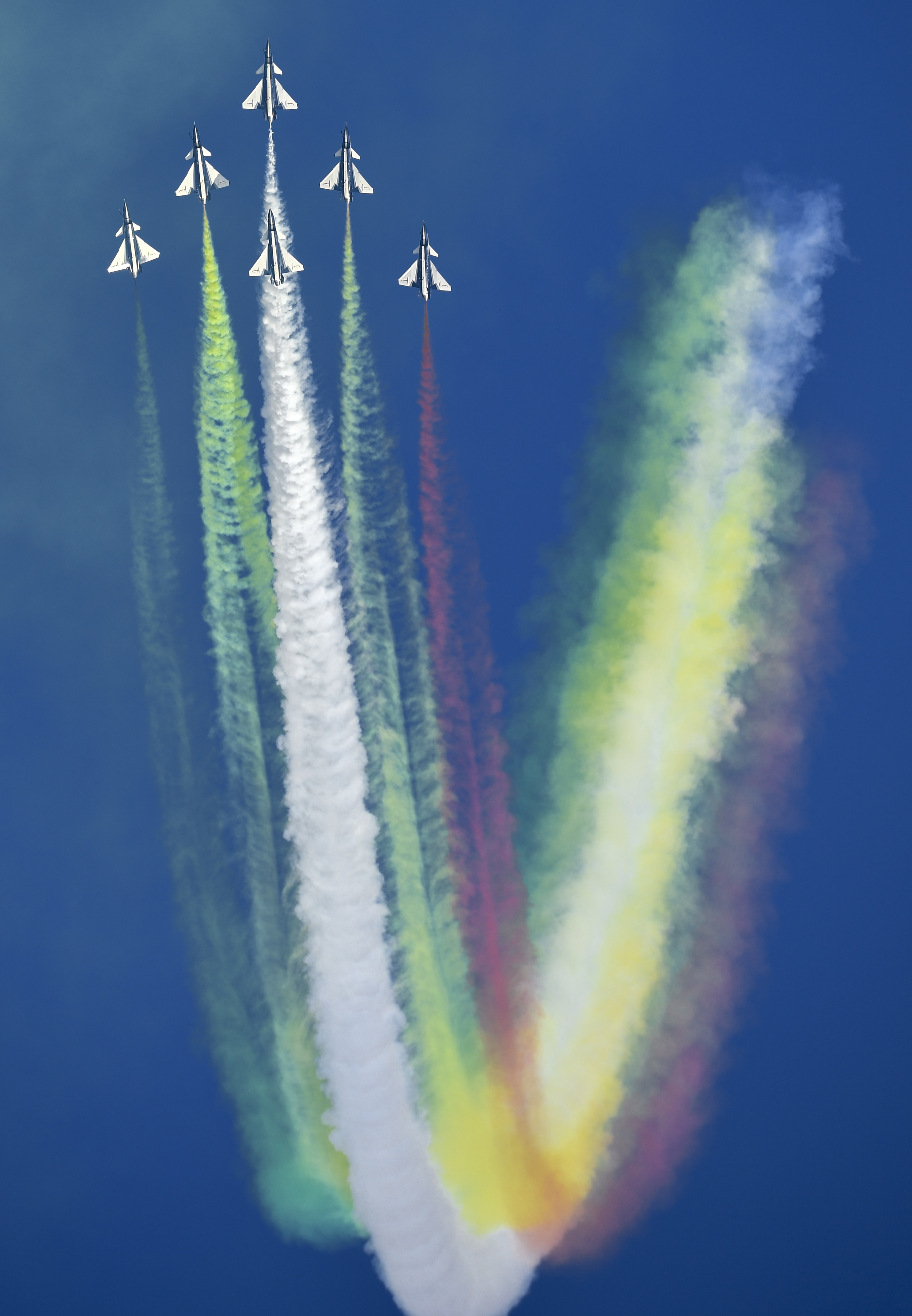 Three aerobatic teams of the PLA air force also performed aerobatic flights, and the air force selected 71 pieces of equipment for static display in the five-day air show.