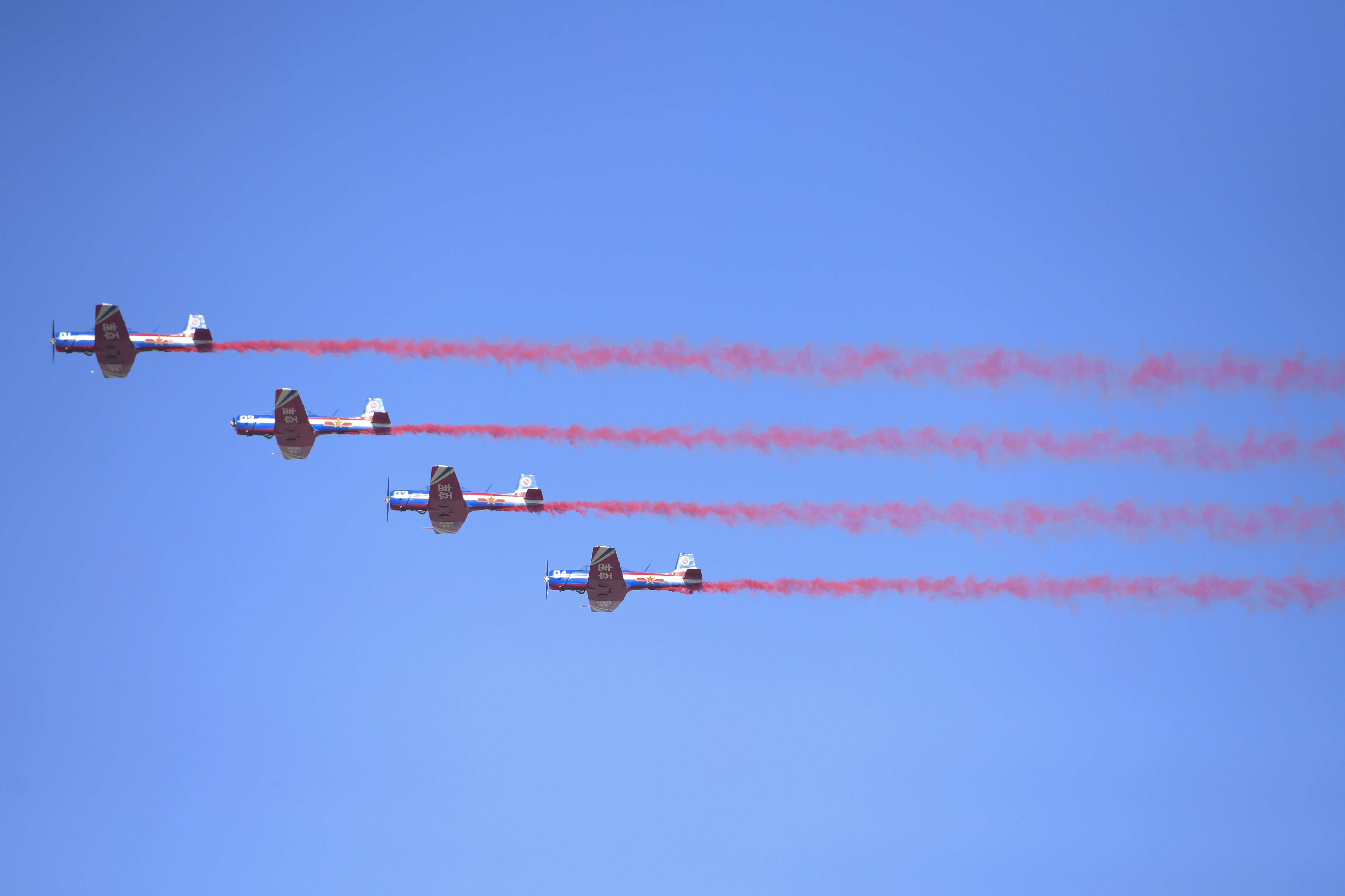 The Sky Wing Air demonstration team performs during an activity celebrating the 70th founding anniversary of the Chinese People's Liberation Army (PLA) air force in Changchun, capital of northeast China's Jilin Province, Oct. 17, 2019. (Xinhua/Zhang Nan)