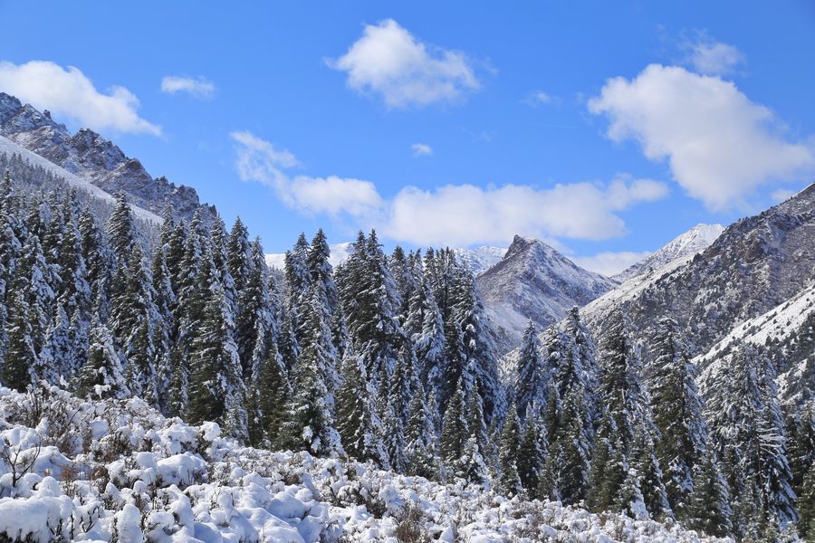 ZHANGYE, Gansu Province, Oct. 20 (Xinhua)-- Pure and bright: The picturesque snow-covered scenery of Shandan Ranch in Zhangye, northwest China's Gansu Province.