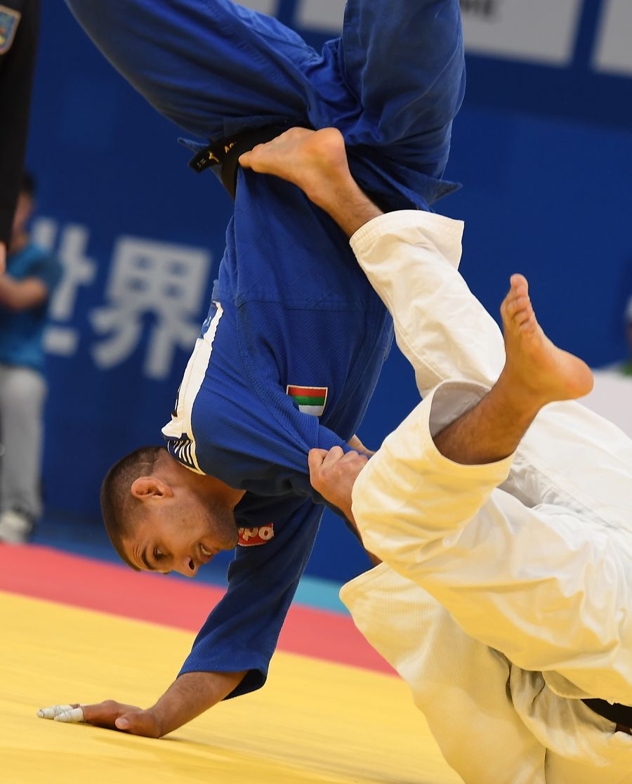 Ivaylo Ivanov (L) of Bulgaria competes with Andera Regis of Italy during the men's 81kg judo final at the 7th International Military Sports Council (CISM) Military World Games in Wuhan, capital of central China's Hubei Province, Oct. 20, 2019. (Xinhua/Li He)