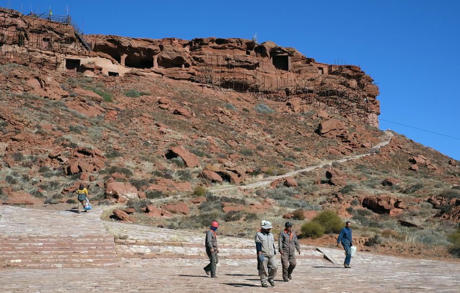 The Arjai Grottoes under reinforcement in Otog Banner of Ordos, Oct. 17, 2019. (Xinhua/Jia Lijun)