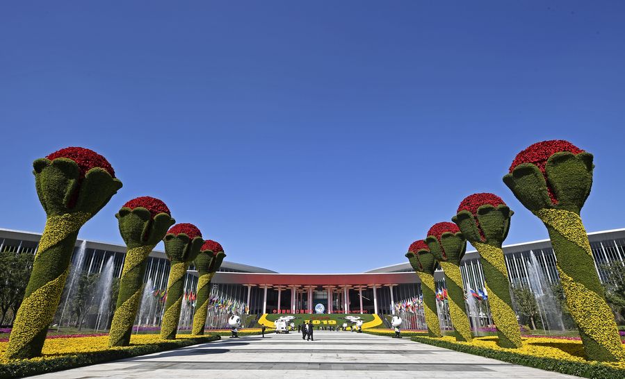 Photo taken on Nov. 9, 2019 shows the National Exhibition and Convention Center in Shanghai, east China, where the second China International Import Expo (CIIE) is held from Nov. 5 to Nov. 10. (Xinhua/Wang Peng)