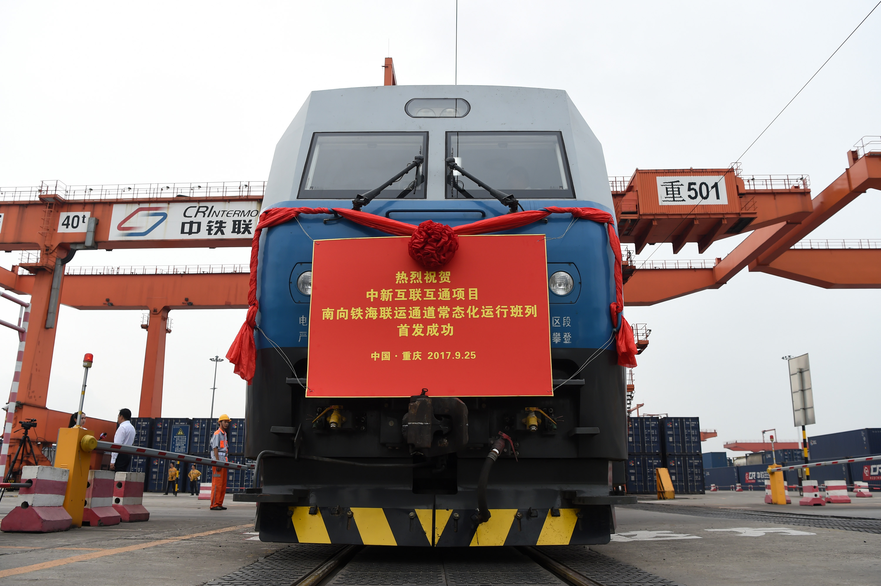 A train under the China-Singapore (Chongqing) Demonstration Initiative on Strategic Connectivity program is ready to leave Chongqing's Tuanjiecun Station on September 25, 2017. (Xinhua/Tang Yi)
