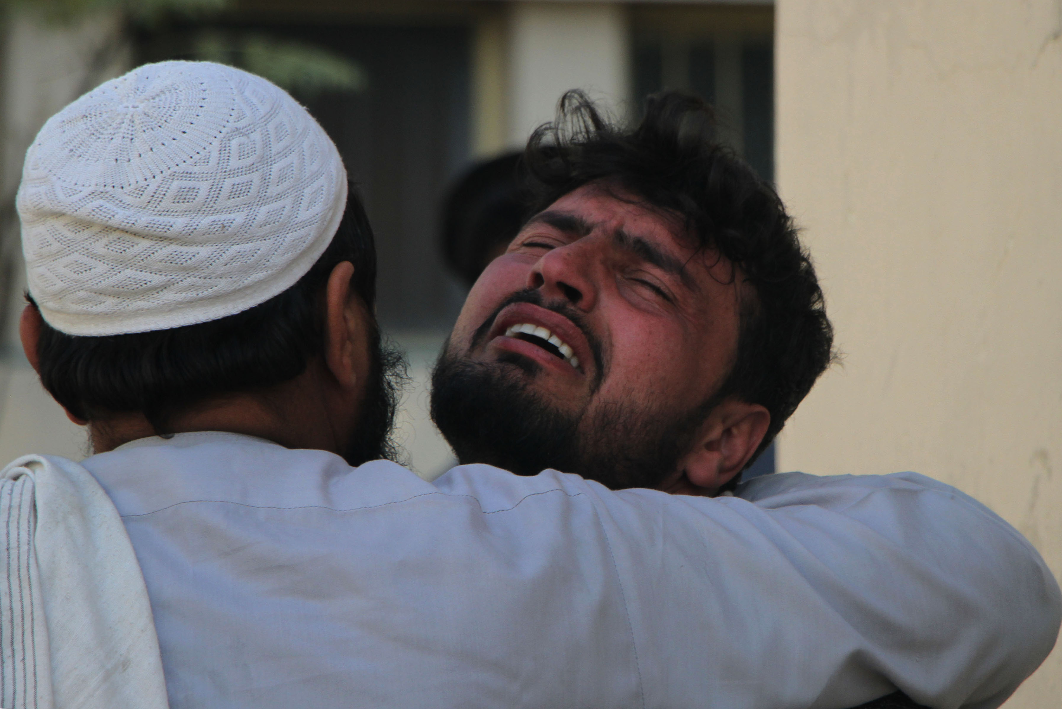 A man mourns for victims killed in an attack in Jalalabad city, Afghanistan, Dec. 4, 2019. Five employees of an aid agency were shot dead and one international staff member of the agency was wounded when the terrorists attacked a vehicle in Jalalabad city, capital of Afghanistan's eastern Nangarhar province on Wednesday, a provincial government spokesman said. (Photo by Saifurahman Safi/Xinhua)
