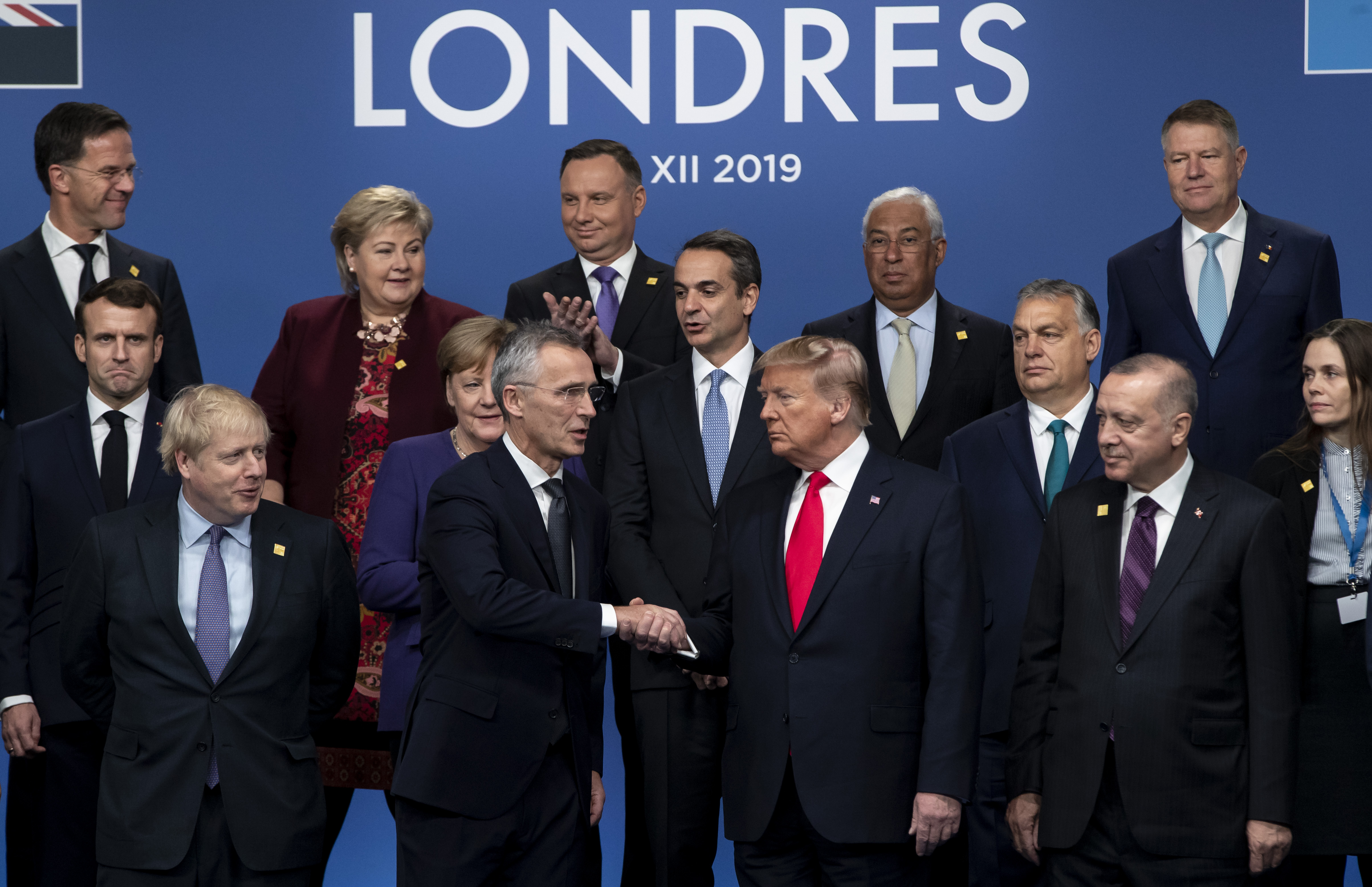 NATO leaders are seen after a group photo at NATO Summit in London, Britain on Dec. 4, 2019. (Xinhua/Han Yan)