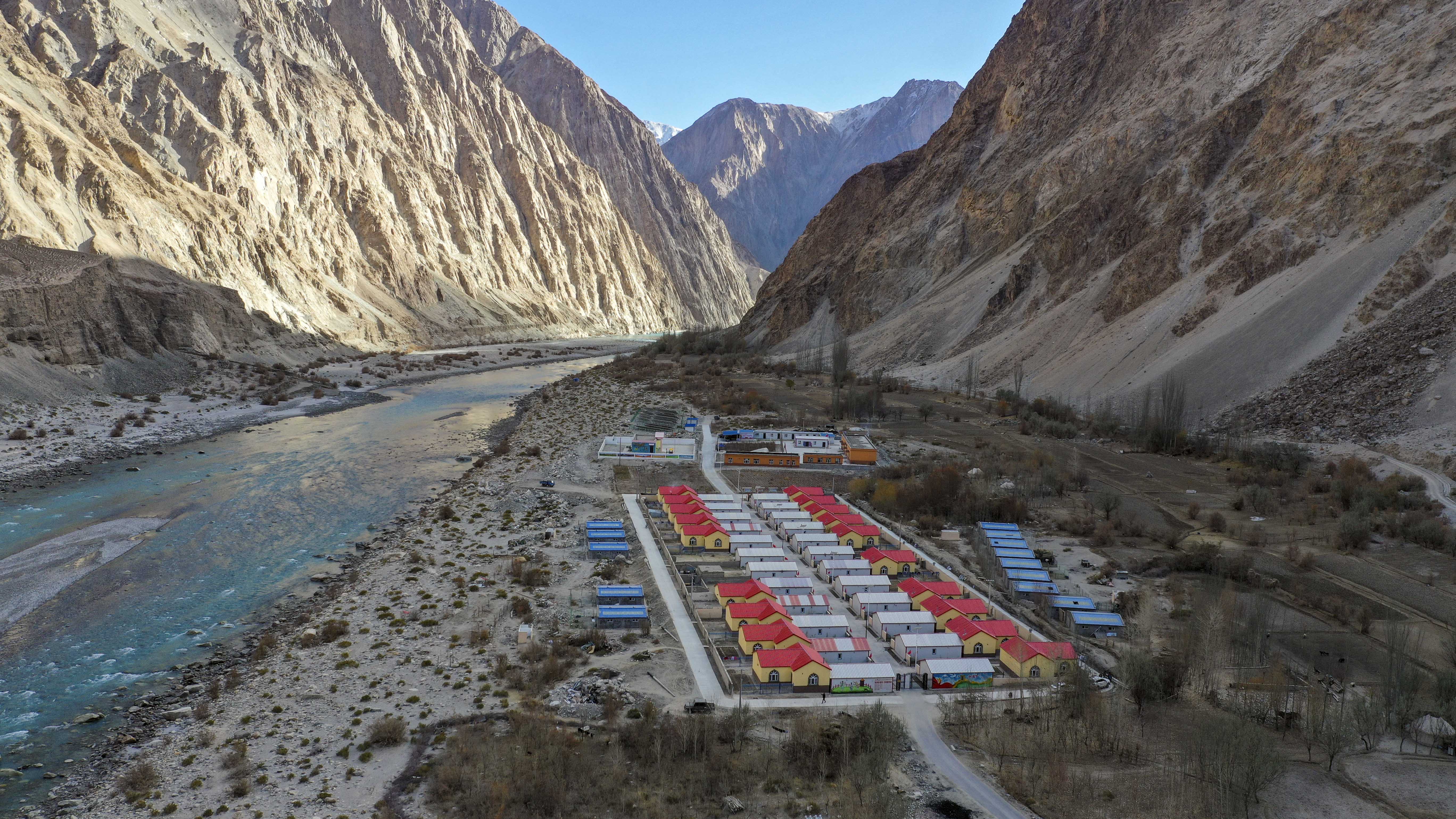 Aerial photo taken on Nov. 23, 2019 shows a village in Tajik Autonomous County of Taxkorgan, northwest China's Xinjiang Uygur Autonomous Region. (Xinhua/Hu Huhu)
