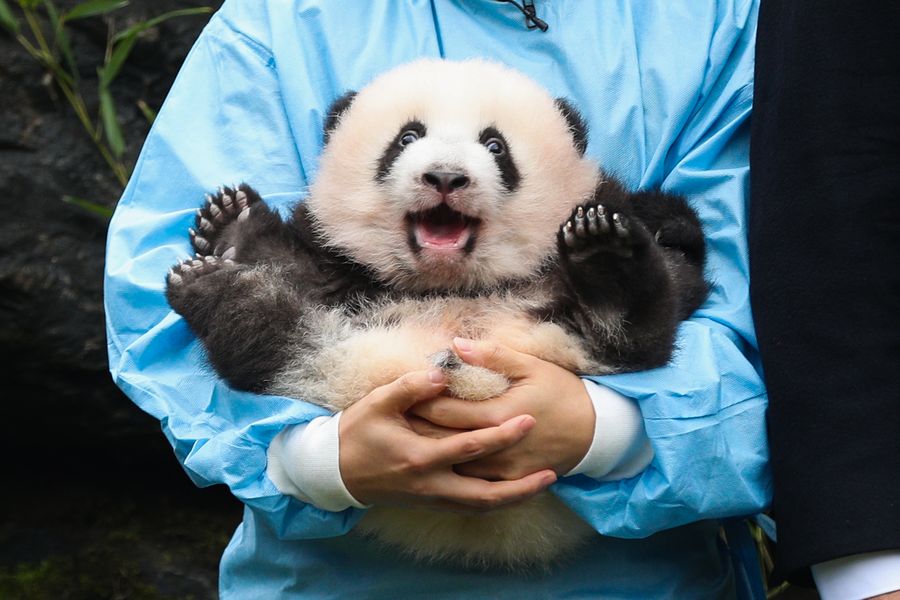 A zookeeper holds the panda "Bao Di" at the Pairi Daiza zoo in Brugelette, Belgium, Nov. 14, 2019. ■