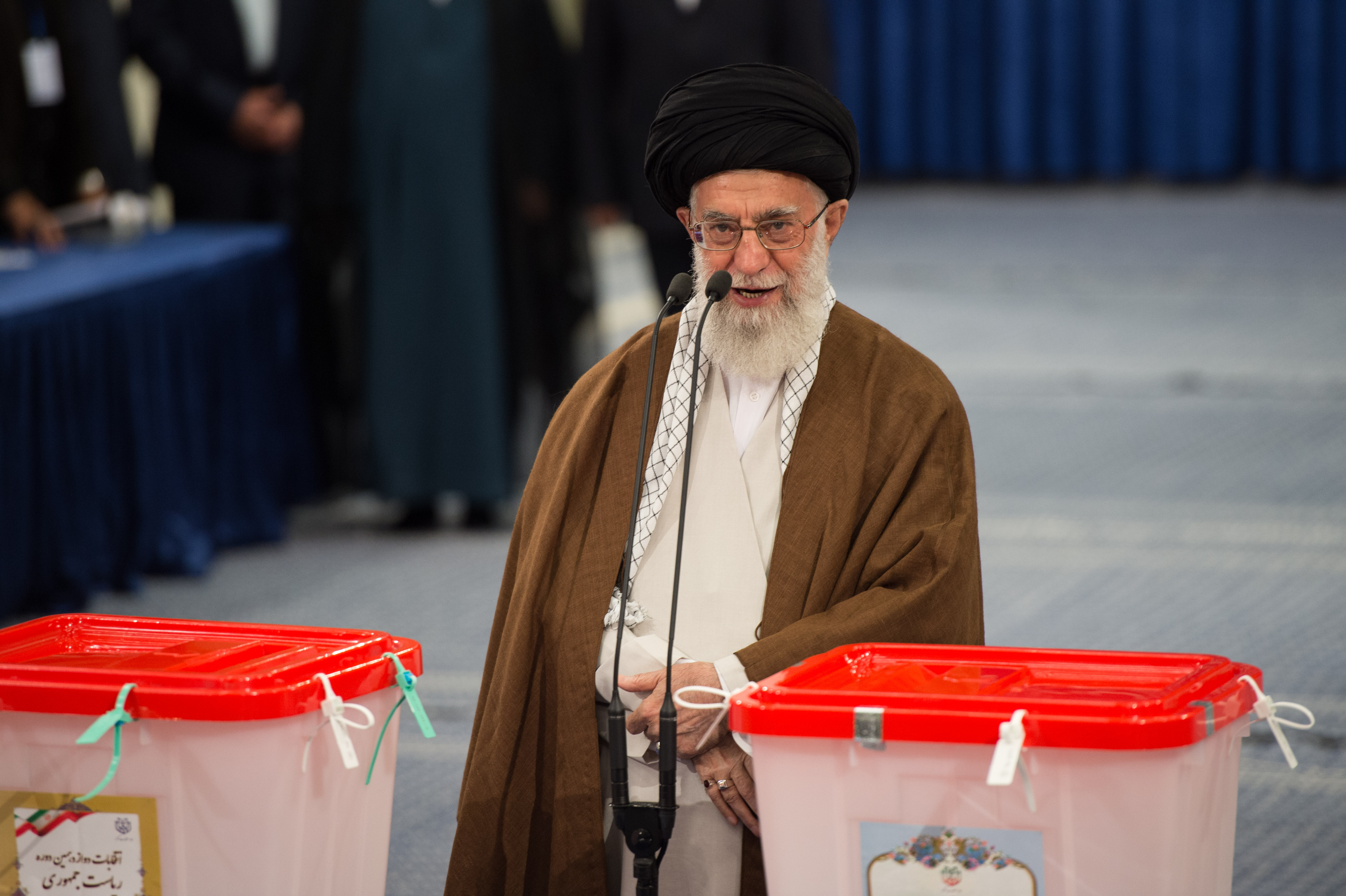 Iranian Supreme Leader Ayatollah Ali Khamenei speaks after casting vote in the presidential election at a polling station in Tehran May 19, 2017. (Xinhua/Meng Tao)