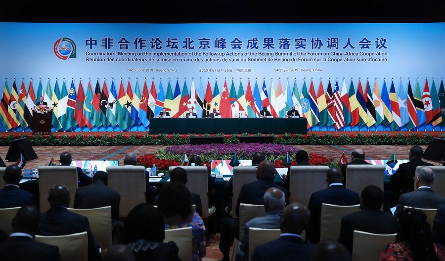 Chinese State Councilor and Foreign Minister Wang Yi addresses the opening ceremony of the Coordinators' Meeting on the Implementation of the Follow-up Actions of the Beijing Summit of the Forum on the China-Africa Cooperation (FOCAC) in Beijing, capital of China, June 25, 2019. (Xinhua/Liu Bin)