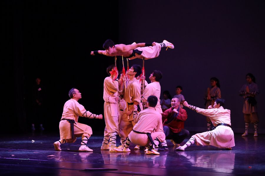 Members of Shaolin Temple Cultural Center present martial arts "Shaolin Kung Fu" during a Spring Festival gala in Houston, Texas, the United States, on Jan. 11, 2020. A grand Spring Festival gala was staged in Houston, the fourth largest city of the United States, Saturday night for local Chinese and Americans to join the Lunar New Year celebrations. (Xinhua/Liu Liwei)