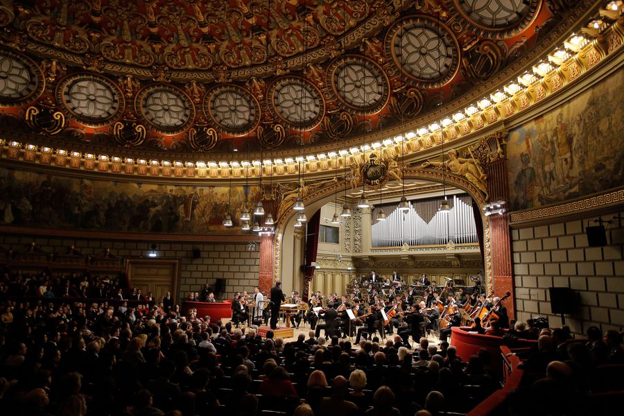 A concert of the China Philharmonic Orchestra, hosted by the Romanian Athenaeum, is held in Bucharest, capital of Romania, Jan. 20, 2020, as part of a series of cultural events to celebrate the upcoming Chinese New Year.(Photo by Cristian Cristel/Xinhua)