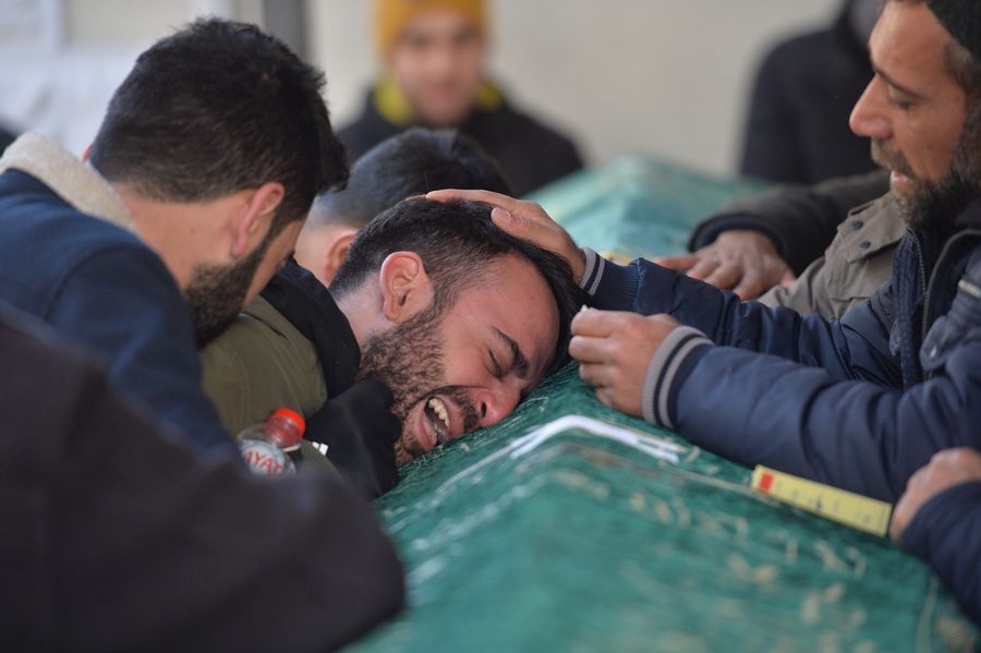 A man cries at the funeral of earthquake victims in the province of Elazig, Turkey, on Jan. 26, 2020. The death toll from a strong earthquake that rocked eastern Turkey on Friday has risen to 36, with 1,607 people injured, the Disaster and Emergency Management Authority (AFAD) reported on Sunday. (Photo by Mustafa Kaya/Xinhua)