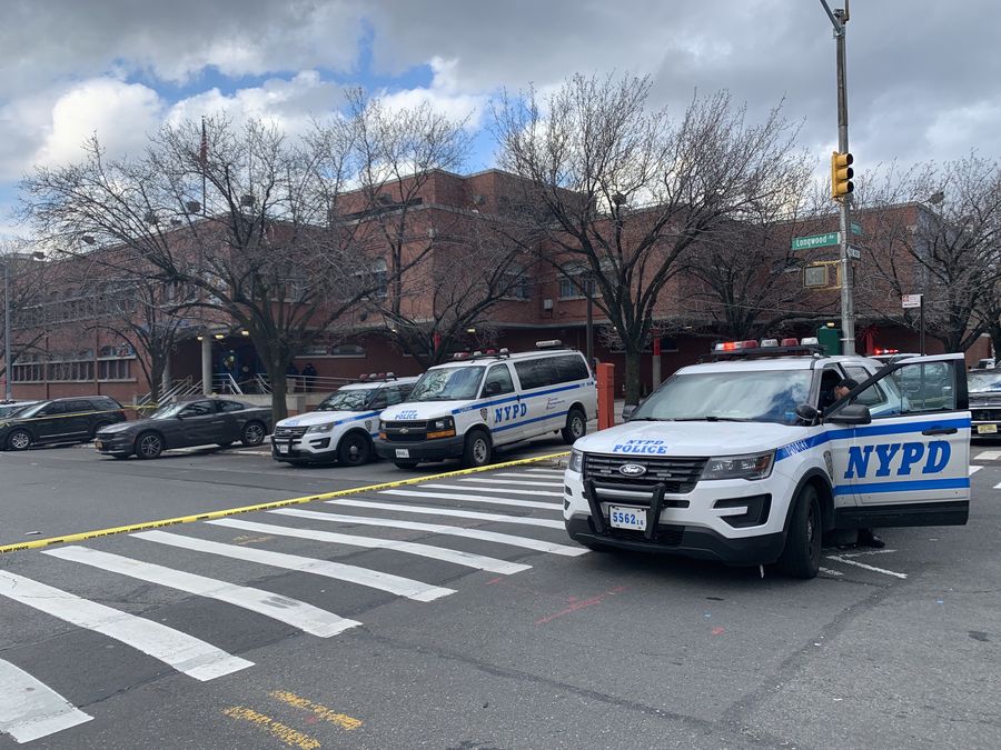 Police vehicles are seen near the site where a gunman opened fire in The Bronx of New York, the United States, on Feb. 9, 2020. (Xinhua/Wang Jiangang)