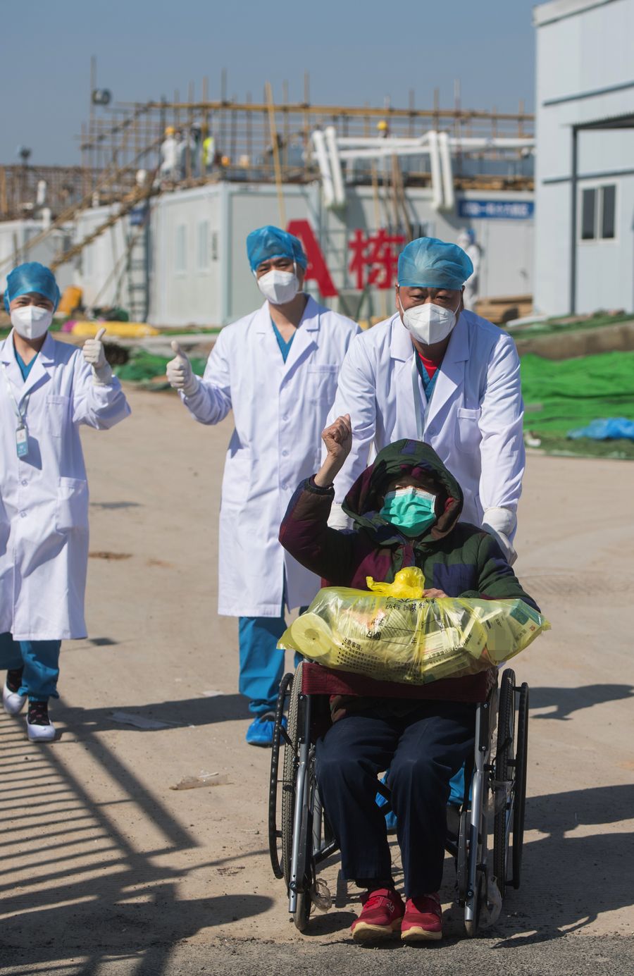 Leishenshan Hospital sees its first two cured patients recover from COVID-19 Tuesday.