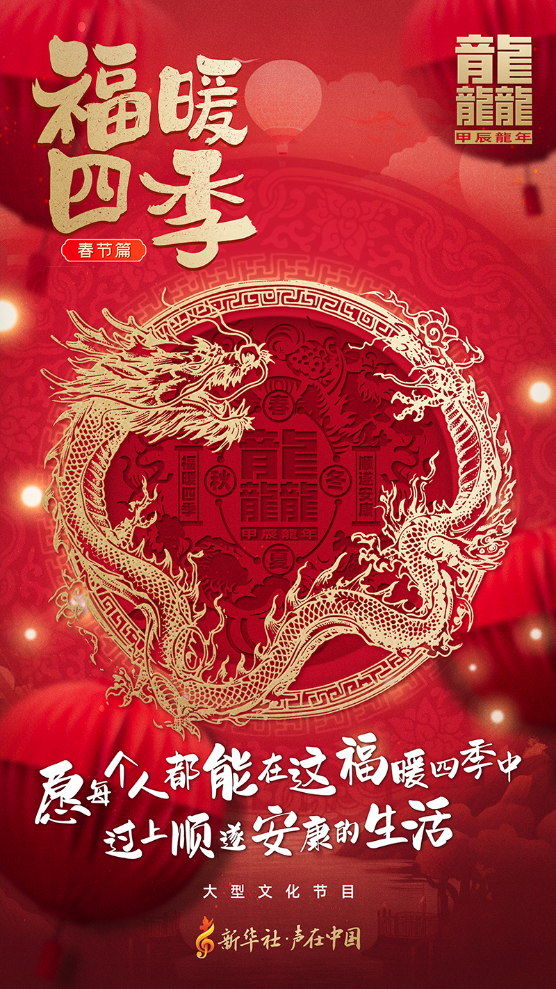 祥龍昂首,萬象啟新。由新華社·聲在中國推出的大型文化節目《福暖四季·春節篇》將于正月初一(2月10日)起溫暖上線!迎新春,山河遠闊。愿福暖四季,祝順遂安康!