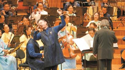 下半場演出中,五重奏與樂隊《卉木拾音》以婉轉細膩的微觀視角展現大國工匠精神;二胡與樂隊《查爾達什》改編自同名小提琴曲,吸收匈牙利吉普賽民間舞曲音樂元素;民族管弦樂《絲綢之路》融合多元文化風情;民族管弦樂《共同家園》奏響攜手共建地球家園的主題。民樂組合與樂隊《蜂飛》改編自俄羅斯作曲大師里姆斯基-科薩科夫的經典之作,打擊樂演奏家王音睿的恣意灑脫,讓觀眾席毫無意外地又一次沸騰。