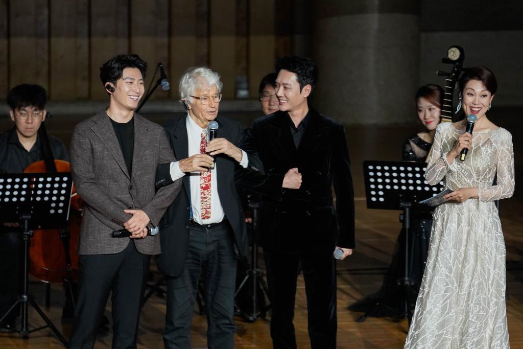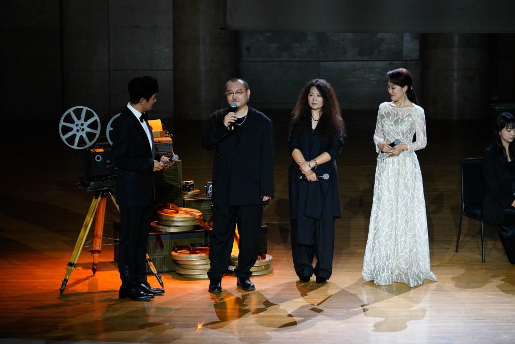 9月22日,電影《封神第一部:朝歌風云》導演烏爾善(左二)、音樂總監蒙柯卓蘭(右二)在音樂會上互動。新華社記者 謝晗 攝