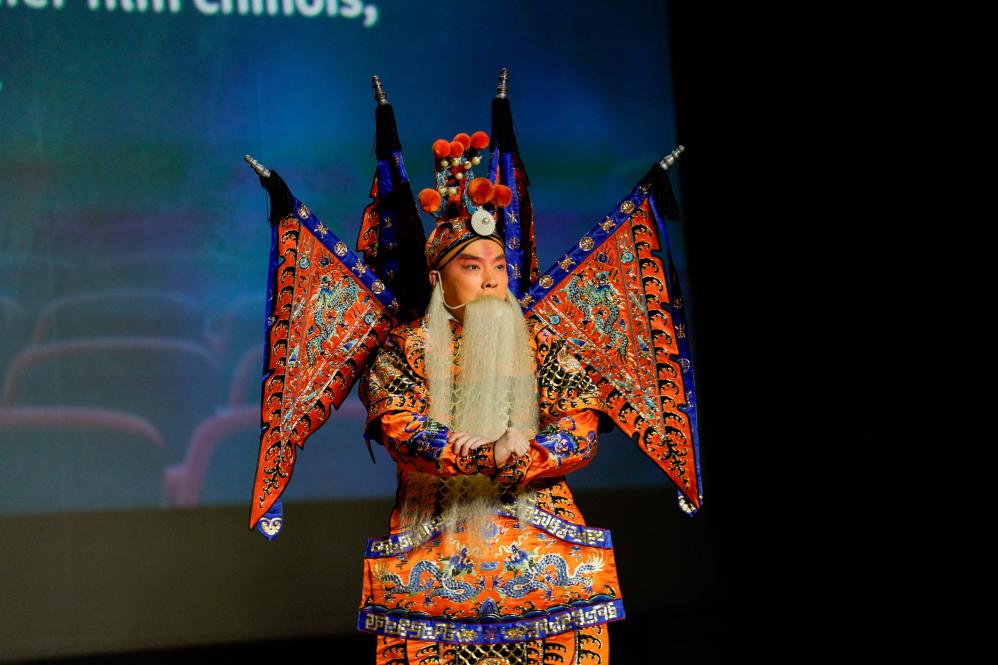 9月22日,京劇演員譚正巖在音樂會上表演京劇《定軍山》片段。新華社記者 謝晗 攝