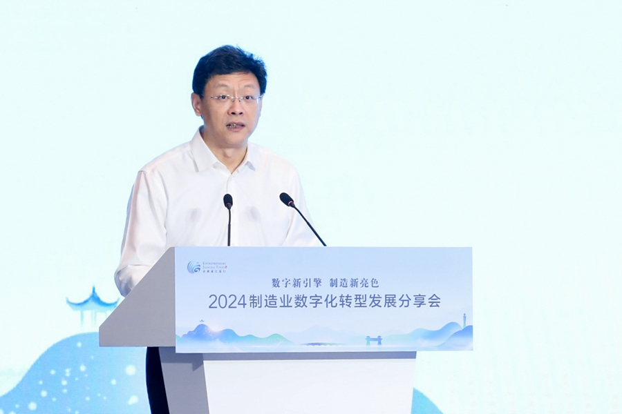 圖為儲學軍出席2024制造業數字化轉型發展分享會并致辭