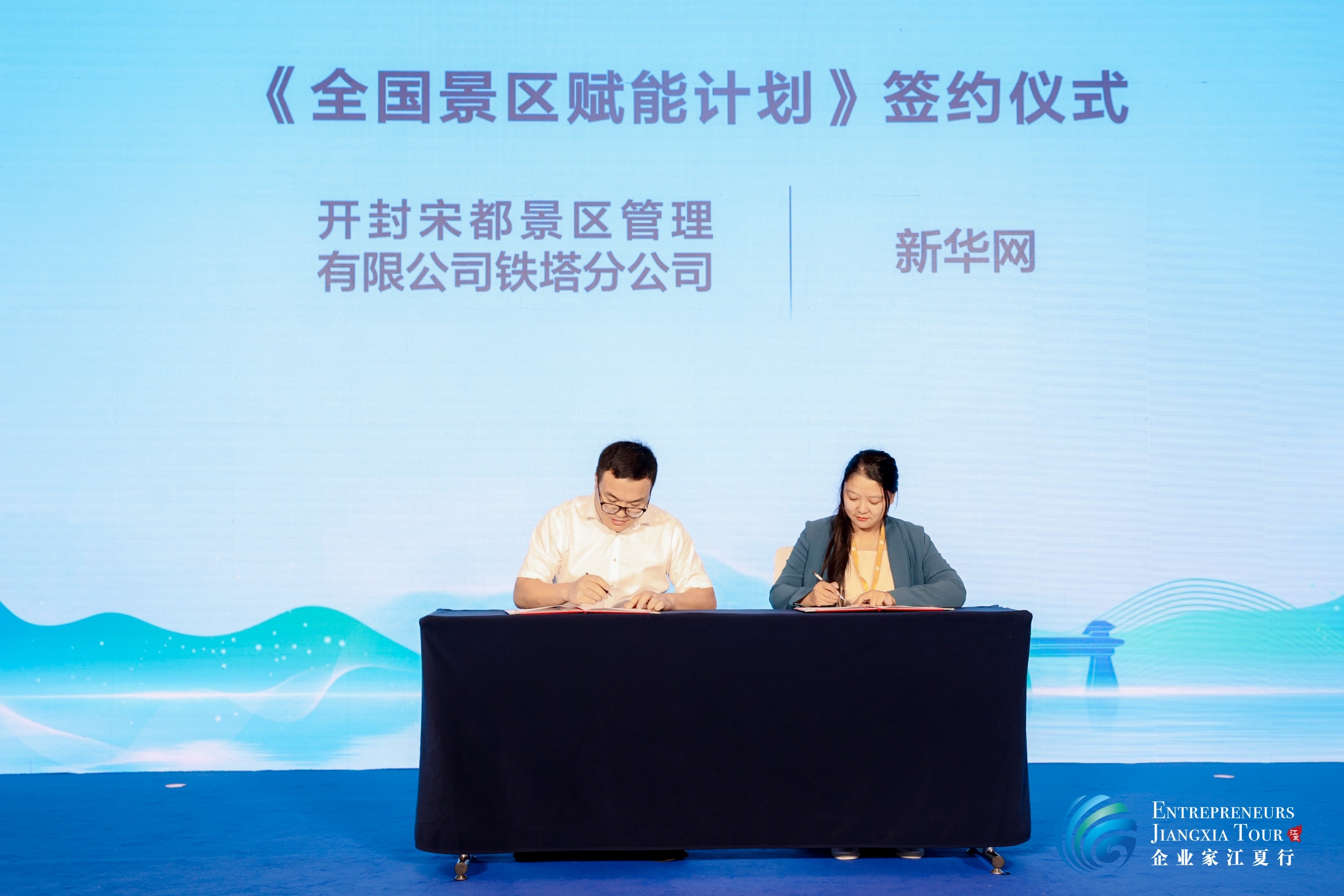 好的公益活動需要各方共同發力,現場,開封宋都景區管理有限公司加入“全國景區賦能計劃”。新華網產經中心食品、文旅事業部總經理劉洋、開封宋都景區管理有限公司鐵塔分公司法人、總經理董芳萍代表雙方簽署此次合作協議。