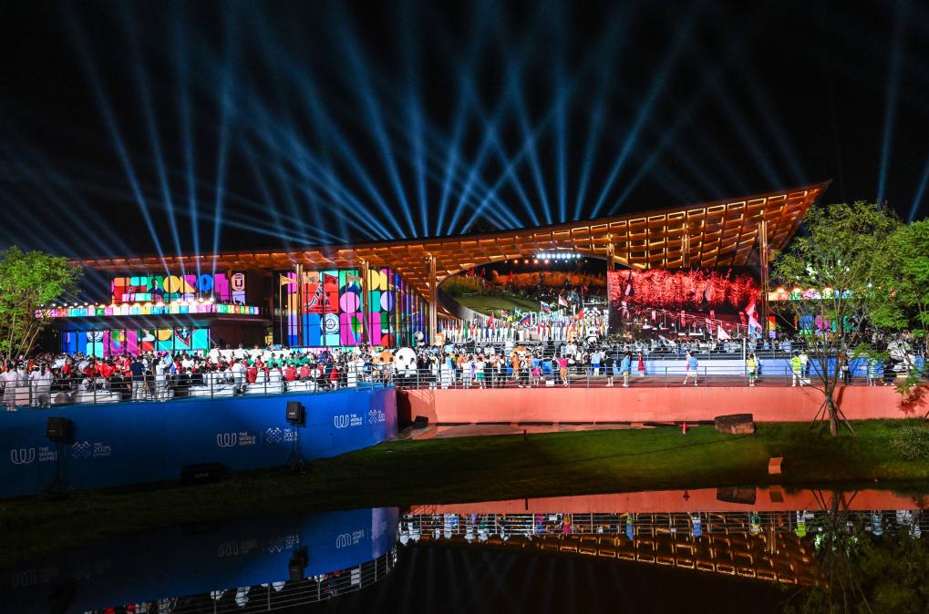 新華社成都8月17日電(記者楊思琪、丁文嫻、董小紅)暮色浸潤龍泉山脈,晚風掠過絳溪河畔。在成都世園會成都國際友誼館,一場繽紛無限、氣象萬千的世界運動盛會,迎來告別今宵、相約未來的時刻。