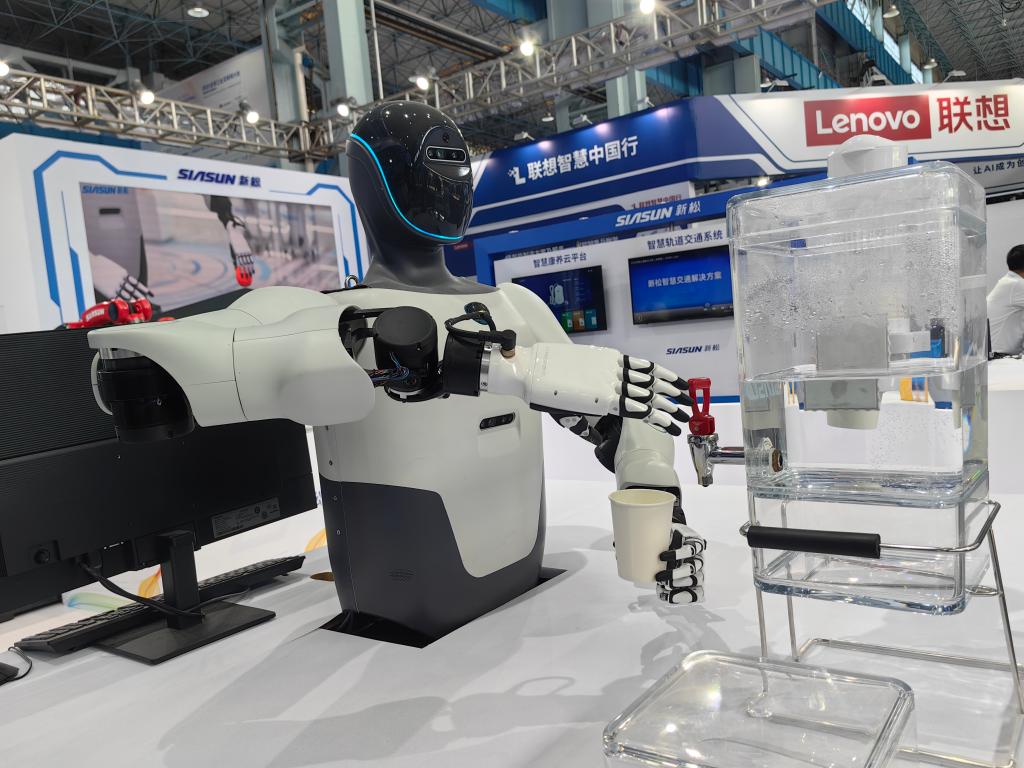 在沈陽新松公司展位,今年8月份剛剛發布的一款具備多模態交互能力的人形機器人吸引了眾多觀眾駐足。記者走上前去,目睹了其“靈巧手”倒水的全流程。“給我接一杯水”,接收到指令的機器人,通過視覺識別精準定位飲水機和水杯位置,自主規劃路徑,雙臂協同完成接水、端送等一系列動作,最終將水杯平穩遞至記者手中。整個過程流暢、穩定,展現了其高精度定位與智能決策能力。