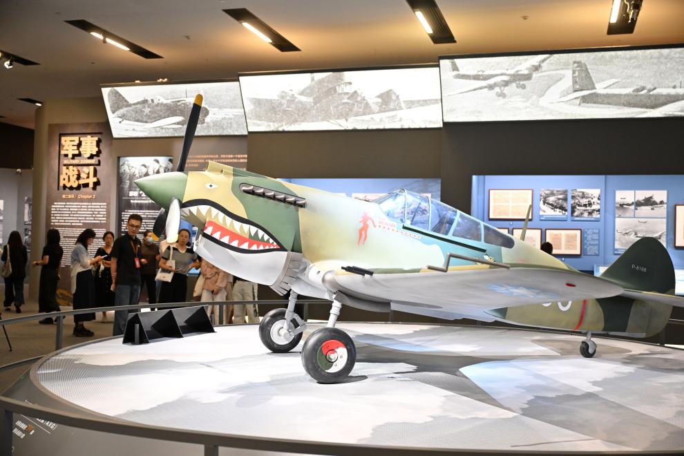 這是在中國國家博物館展出的“飛虎隊”P-40戰斗機模型(9月7日攝)。