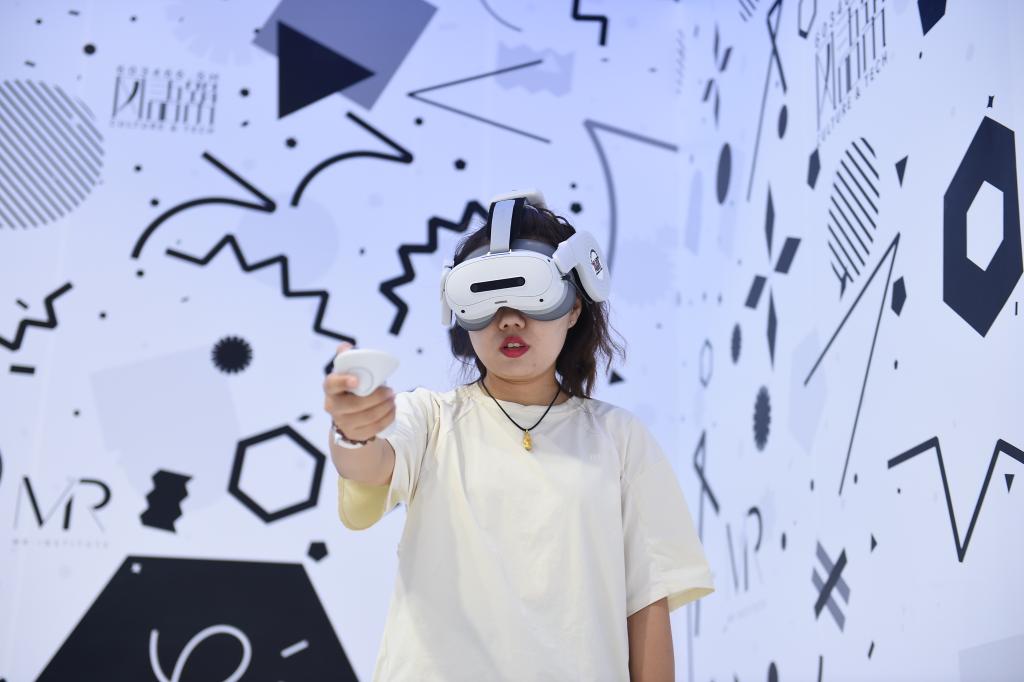 9月11日,參展者在文旅服務專題展區海淀展廳體驗沉浸式VR大空間項目。