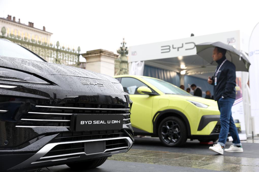 9月26日,在意大利都靈,人們在2025年都靈車展上參觀比亞迪展區。