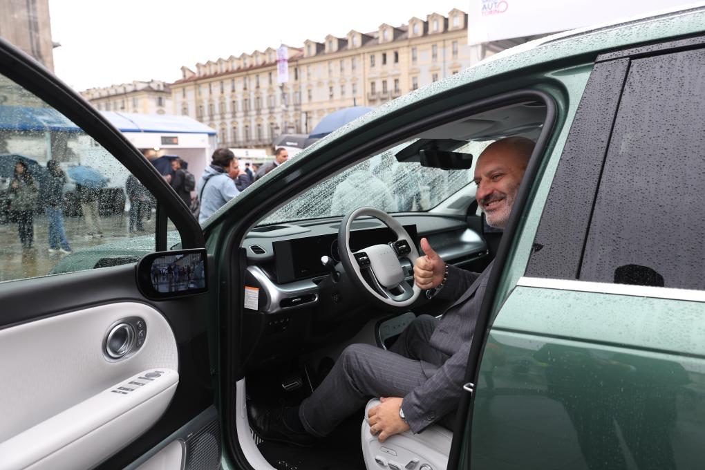 9月26日,在意大利都靈,人們在2025年都靈車展上參觀一款展出的菲亞特汽車。