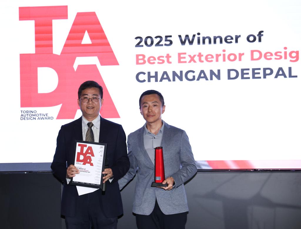 9月26日,在意大利都靈,榮獲“都靈汽車設計獎”最佳外觀設計獎的長安“深藍S07”代表領獎。