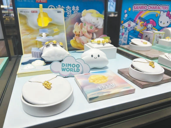 押寶“痛金”的商家可不止一家。記者走訪發現,在周大福、周生生、老鳳祥、潮宏基等黃金門店,以往占據顯著位置的轉運珠、手鐲逐漸“退位”,二次元聯名黃金產品成為主角。在潮宏基崇文門店,近一半柜臺都擺上了三麗鷗、黃油小熊、哆啦A夢等聯名金飾,造型多樣、顏色鮮艷,成為店內最吸睛的區域。