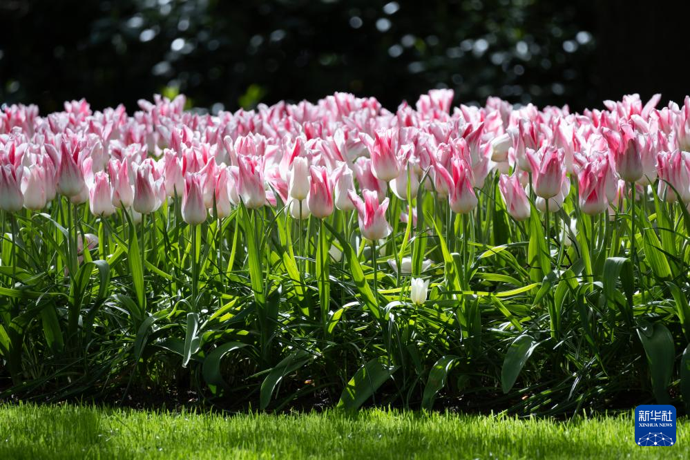 4月14日在荷蘭利瑟庫肯霍夫公園拍攝的郁金香。新華社記者 孟鼎博 攝