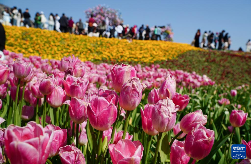 在淄博市博山區紅葉柿巖景區拍攝的郁金香。新華社記者 徐速繪 攝