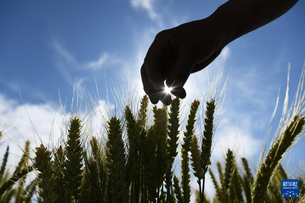 農戶在云南省麗江市玉龍納西族自治縣黃山街道的麥田里查看小麥長勢。新華社發(趙慶祖攝)