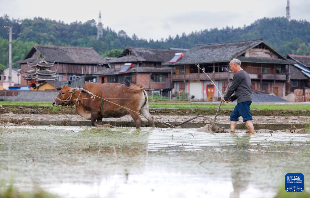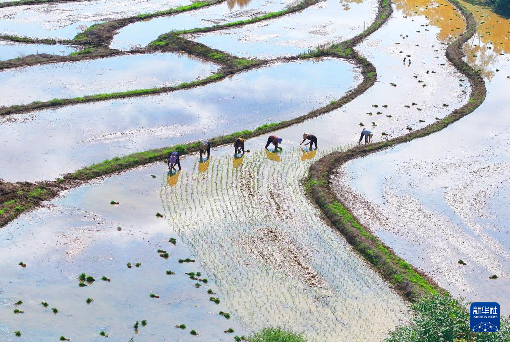 湖南省懷化市通道侗族自治縣雙江鎮馬龍村農民在田間耕作。新華社發(粟勇主攝)
