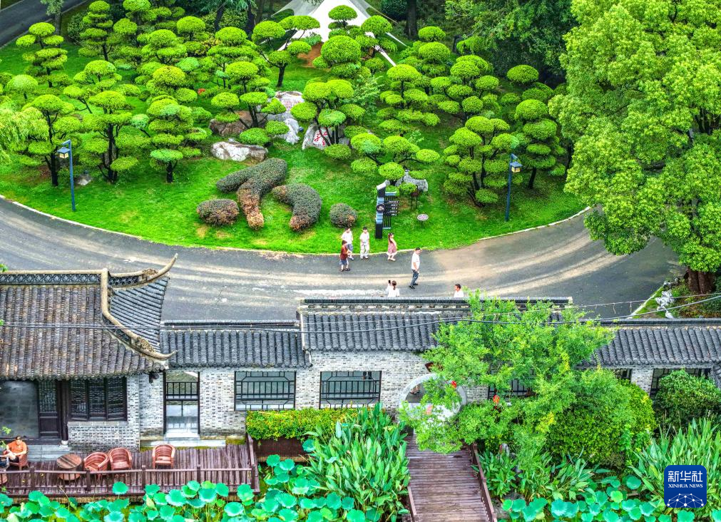 游客在江蘇省揚州市江都區丁伙鎮樸園游玩(無人機照片)。