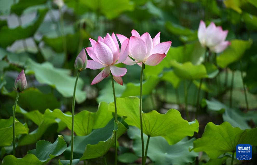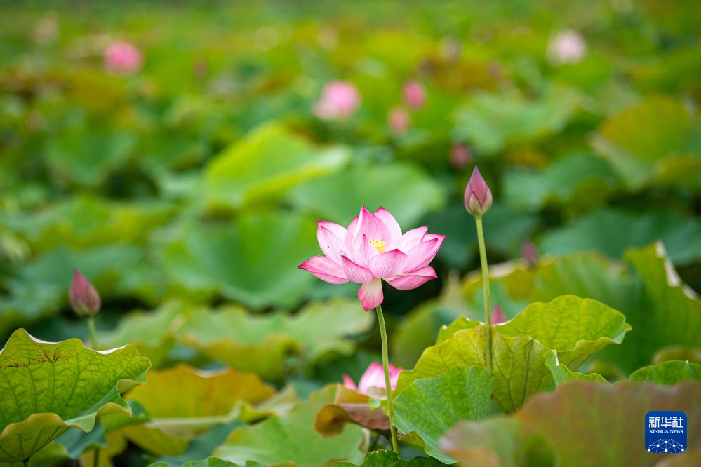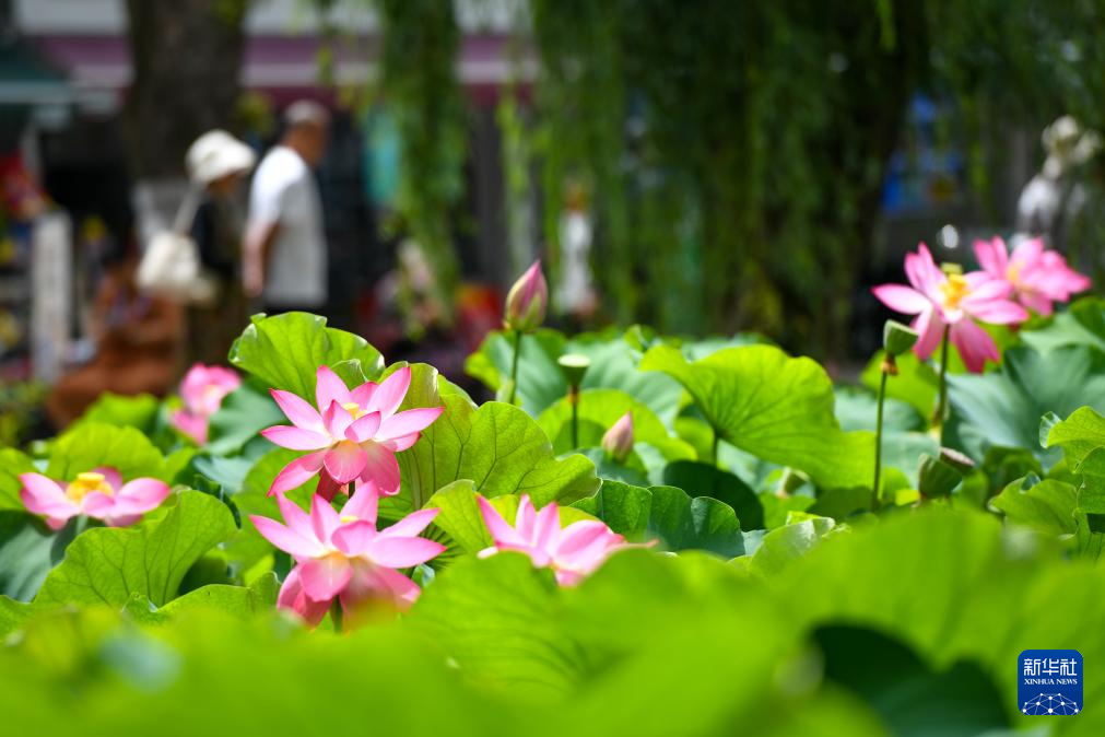盛夏時節,昆明市大觀公園內的荷花漸次綻放,吸引眾多市民、游客前來欣賞。