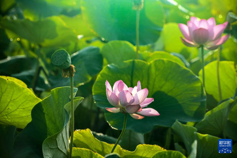 7月6日在河南省濟源市玉陽湖濕地拍攝的荷花。
