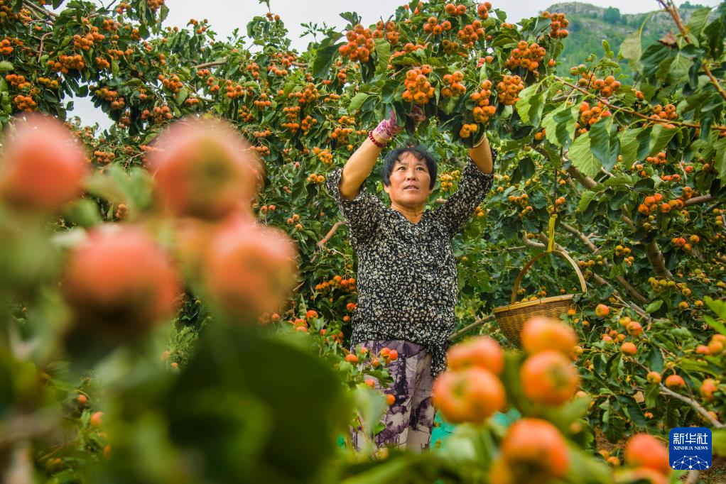 9月11日,山東省棗莊市山亭區水泉鎮溝北村農民采摘山楂。
