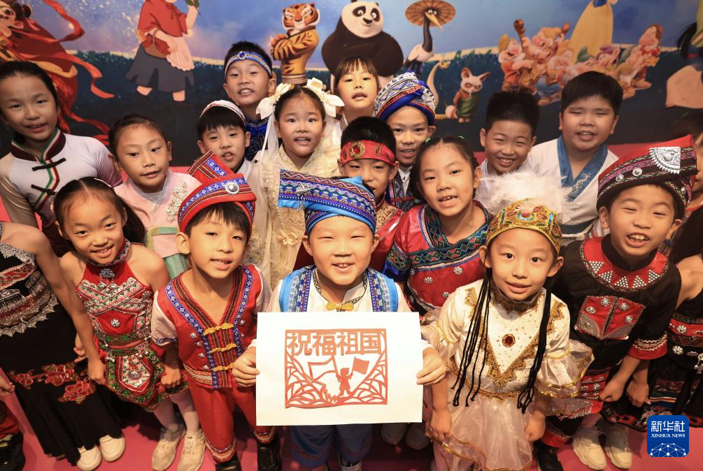 9月25日,在湖北省武漢市,未來實驗小學學生開展迎國慶主題活動。